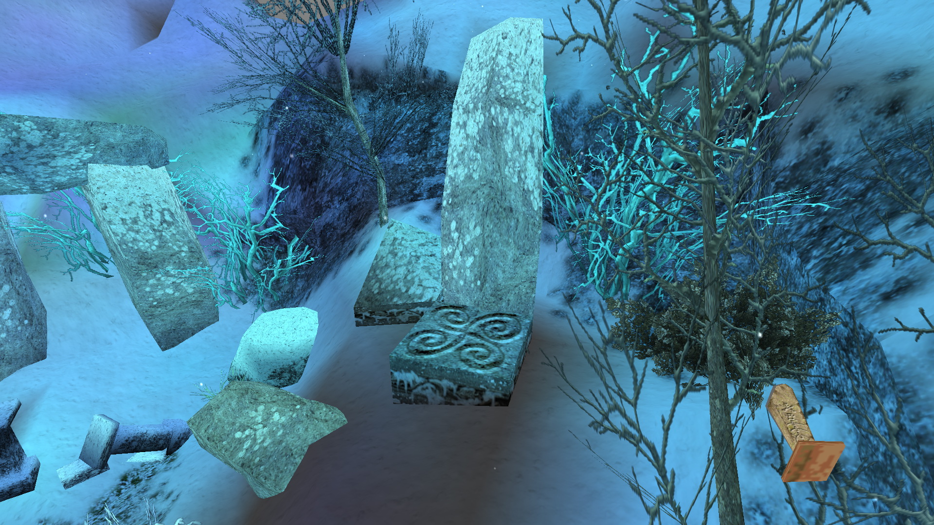 A vízeséstől jobbra egy Stonehenge-szerű, függőleges kőmonolitokból álló csoportot láthatunk. A jobb szélső mellett egy megemelt tábla található. Ha ráállsz, a kelta kulcsodat használod, és a vízesés mögötti kis barlangban leereszkedik egy víz alatti tömb.