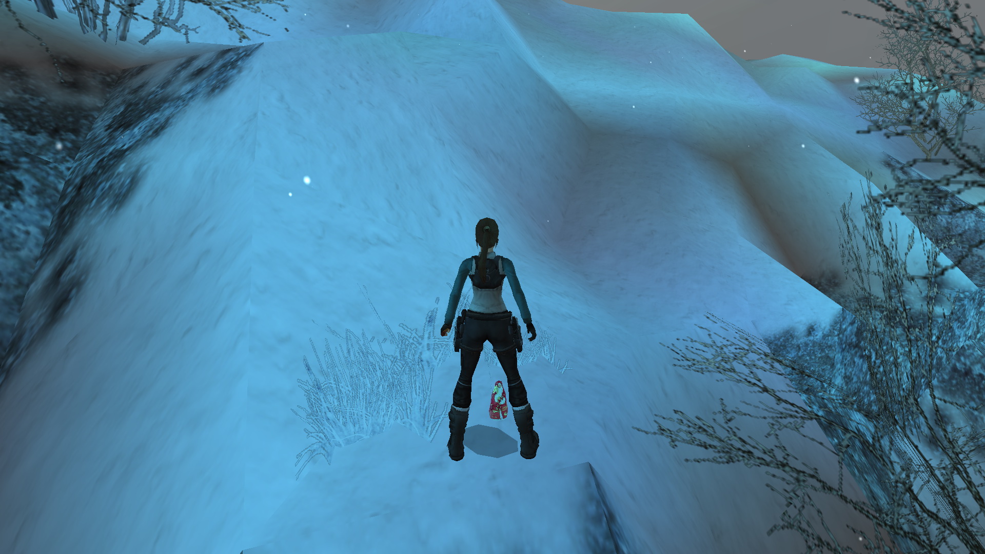 Ugrás a folyópartra, és ugorj le a fagyott felszínre. Kövessük balra a folyót, és ugorjunk fel balra, egy egyenes felületre, a kőpárkányra. Ugorj futva a következő magasabbra, (vagy kapaszkodj meg és húzd fel magadat), húzd fel magadat balra, és ugorj fel ÉK-re. Állva ugorj balra, a jégpárkány tetejére, de hagyj elég helyet, hogy ne csússz le a túloldalon a faluba. Fordulj jobbra, és menj el ahhoz a göcsörtös bokorhoz, amely a következő kis Mikuláscsokit rejti. Ez a 12. secret.