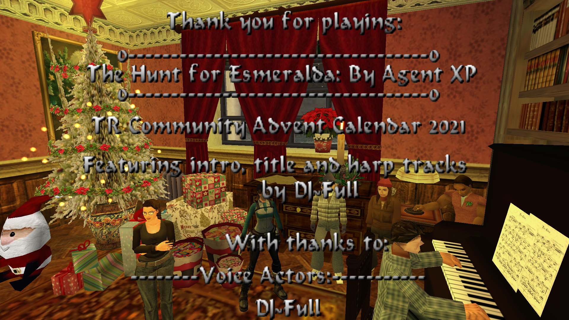 Több Tomb Raider pályakészítő gyűlt össze karácsonyra egy kelta parasztházban. Lara éppen hozzájuk tart, és hall egy helyi legendáról, egy hárfásról, aki a legszebb dallamokat játszotta, végső nyughelye azonban ismeretlen. Lara kíváncsi, és szeretne többet megtudni. Addig is azonban segítenie kell barátainak, és el kell végeznie néhány feladatot a farmon, és a közeli faluban. Többek között segítenie kell megtalálni Esmeraldát, az elveszett csirkét, aki valahogy megszökött a karámból és eltűnt...