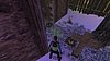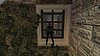 Előbb azonban sürgősebb dolgokat kell elintézni. Fordulj meg, ugord át a kőfalat, menj balra, az épület mögé, és figyeld meg balra a zárt ajtót és a kulcslyukat. Menj a parasztházhoz, és mássz fel a borostyánnal borított falon az ablakpárkányhoz, ahová a varjú elejtette a Pajta kulcs-ot.