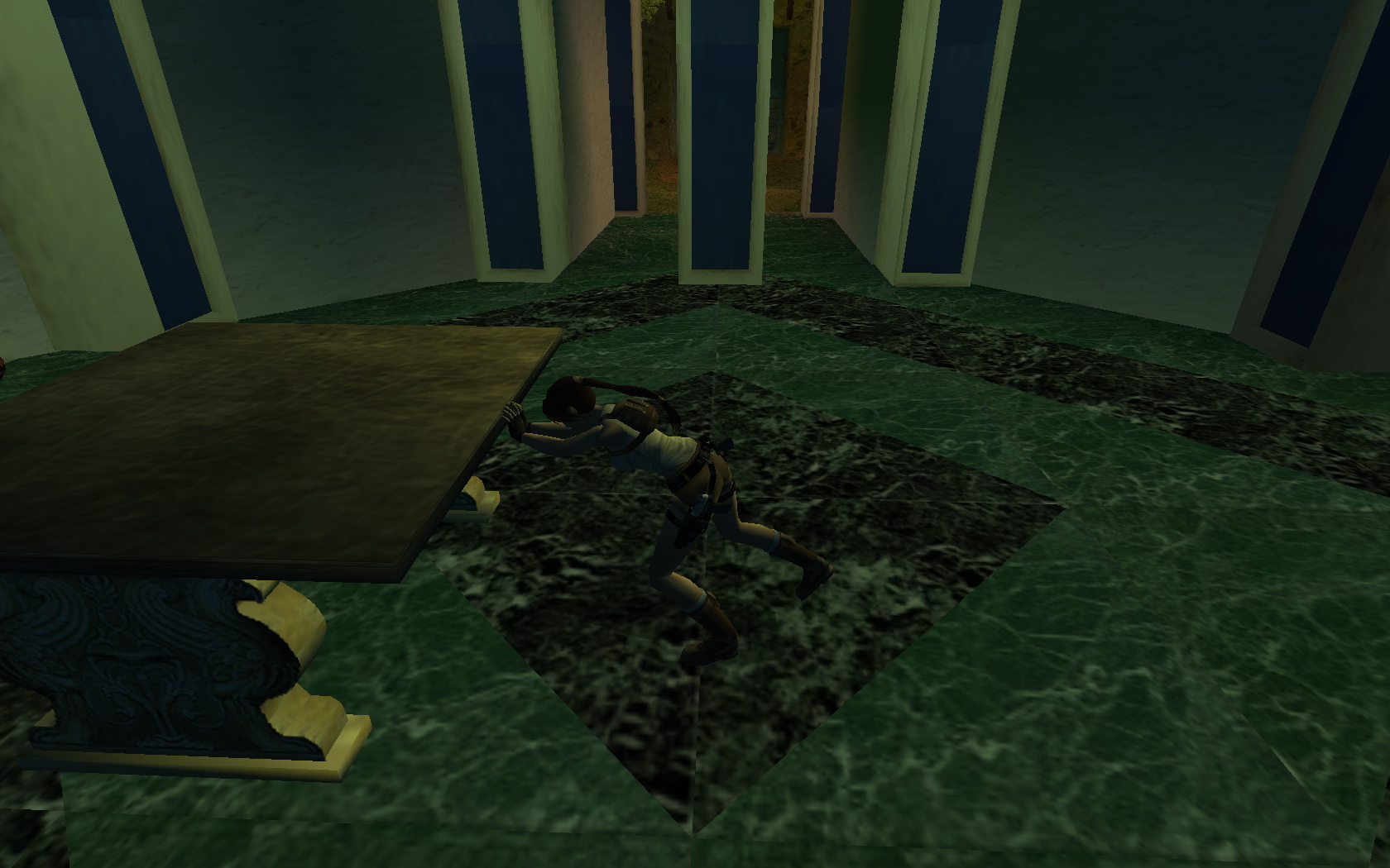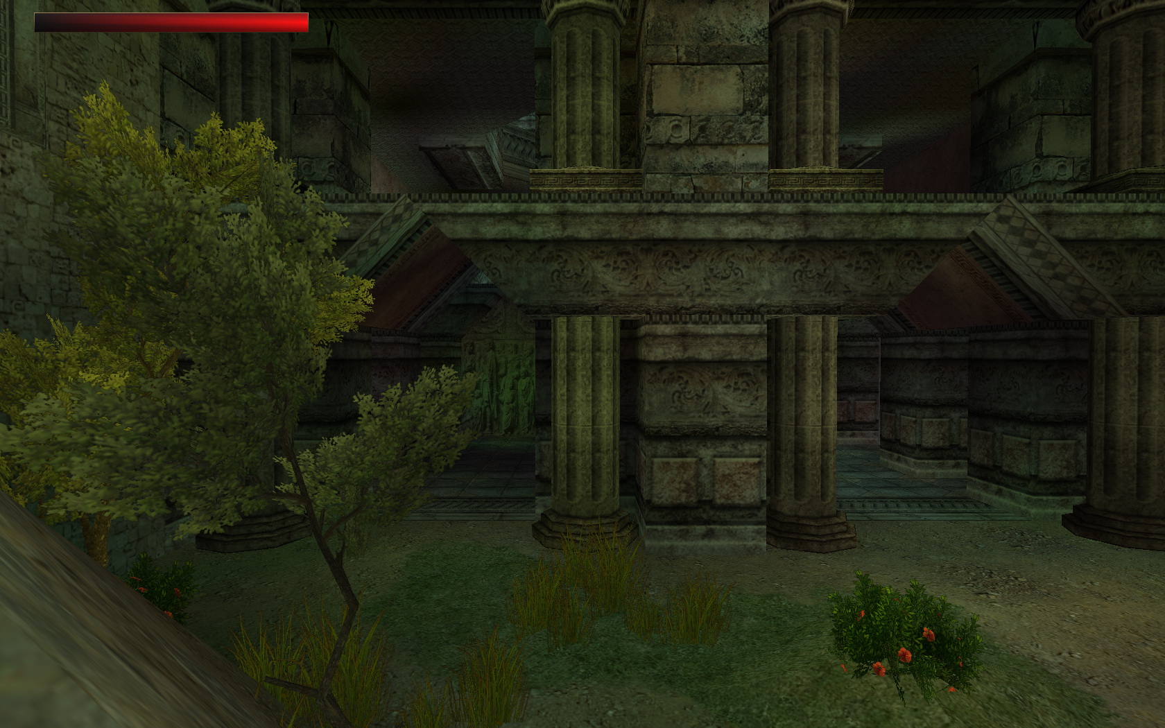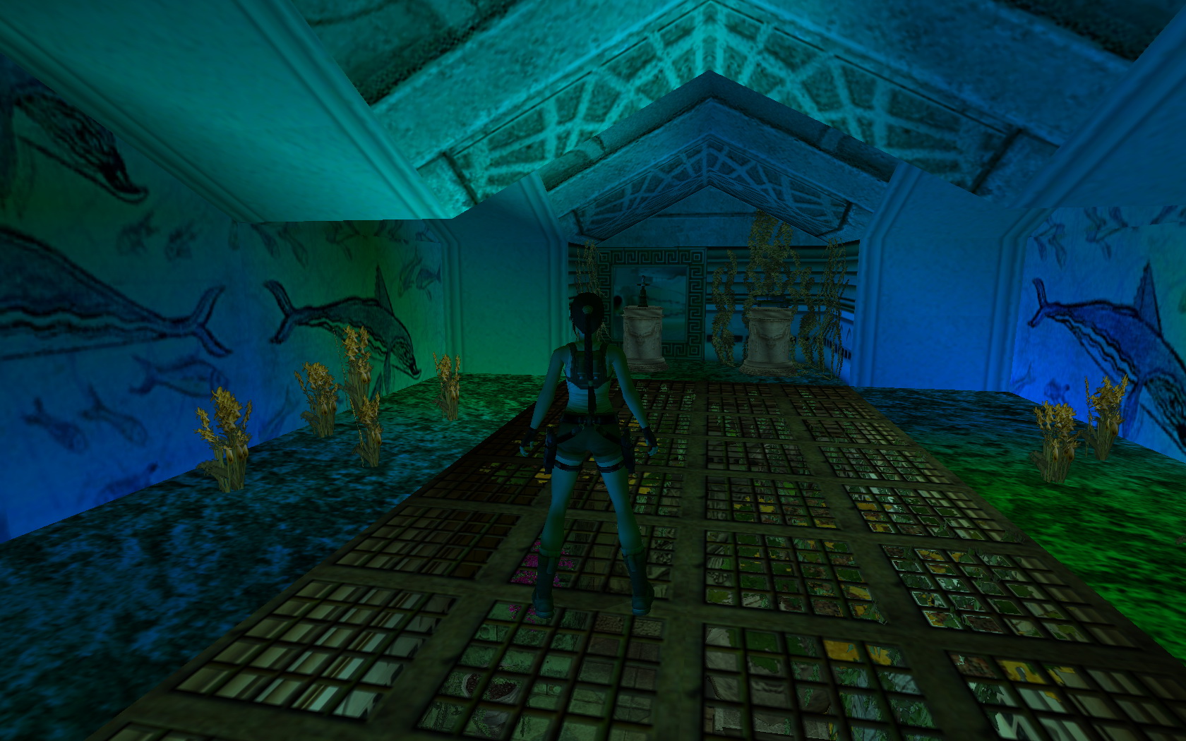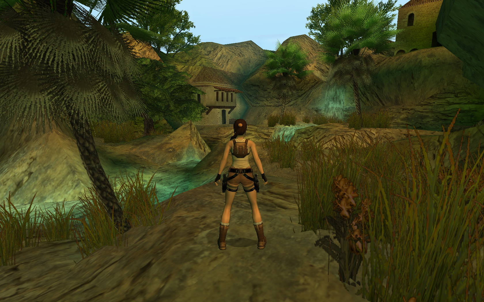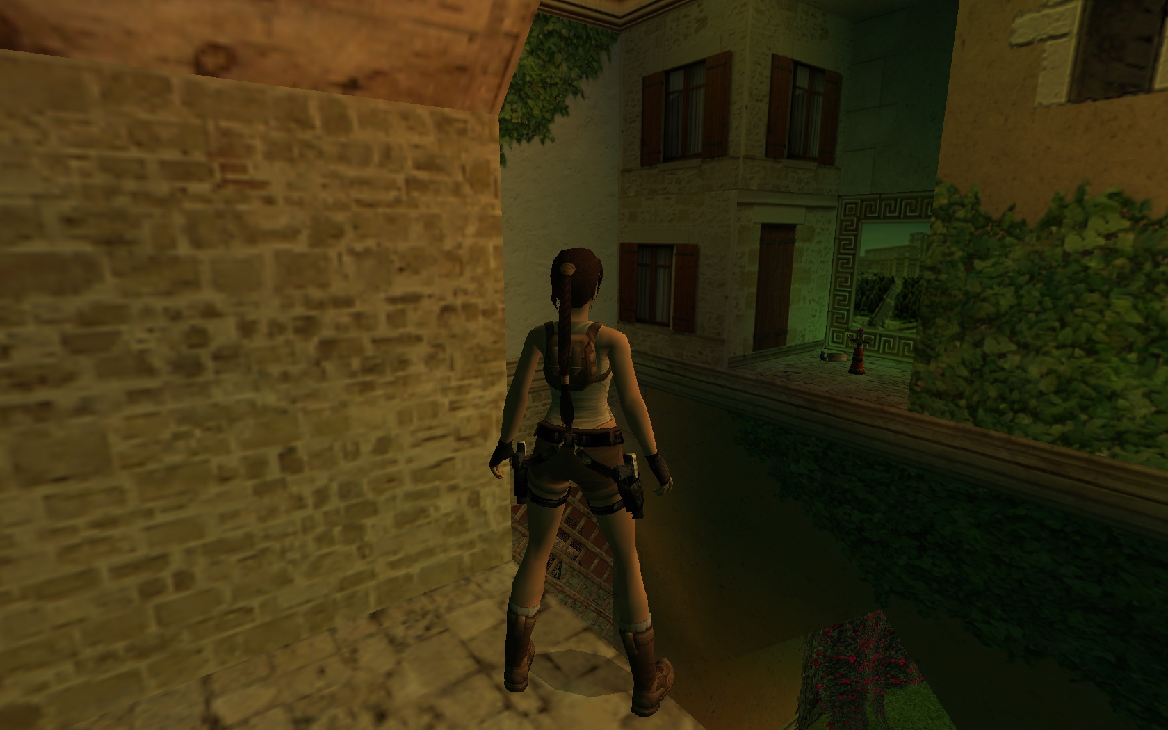 Menj ki a medencéhez, és a túlsó sarkánál nyisd ki az ajtót. Lődd le a patkányokat, tépd fel a csapóajtót, menj le. A folyosón balra rúgd át a falat, bent jobbra, a hordó előtt lőszert találsz, a másik oldalon pedig szétlőve az akadályt, egy fali gombot kell benyomnod. Menj ki, de mielőtt a medencéhez érnél, az ajtón innen, nézz felfelé. Mássz fel az indákon, majd jobbra juss el az épületre. Onnan menj, ugord át a kis kerítést. Kutasd ki a kriptát, medipack-ot rejt, fáklyát is találsz ott, lődd le a madarat, majd kússz át a résen. Nyisd ki az ajtót, vedd fel a medipackot az asztalról, nyisd ki a következő ajtót, menj le a lépcsőkön, rúgd be a faajtót, és a szabadba érsz. Balra menj, a következő teremben nyomd meg a fali gombot, és irány vissza az előző terem, át a kinyílt ajtón. Lőszert, fáklyát találsz ott, és a szekrényen egy Perszeusz Kardját, ami a feszítővas a játékban.