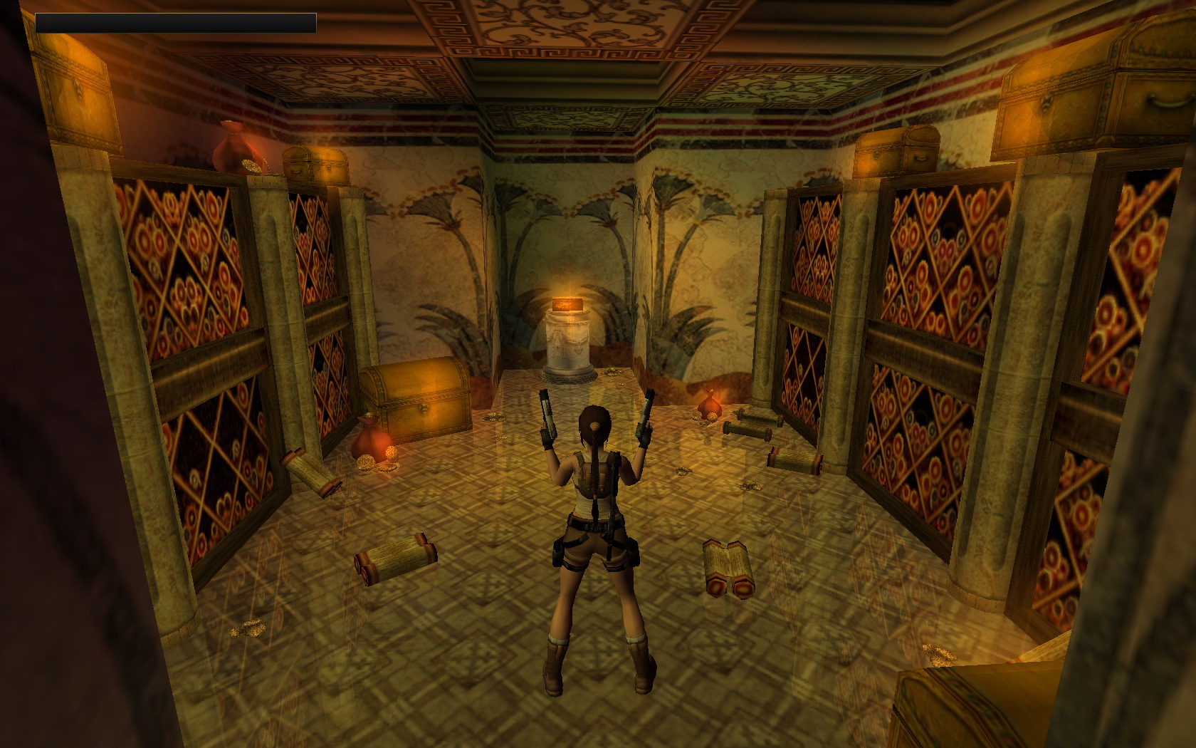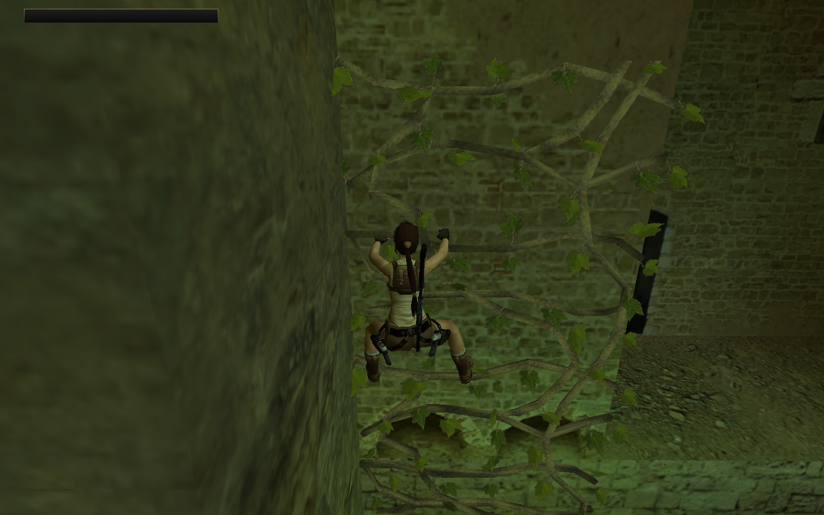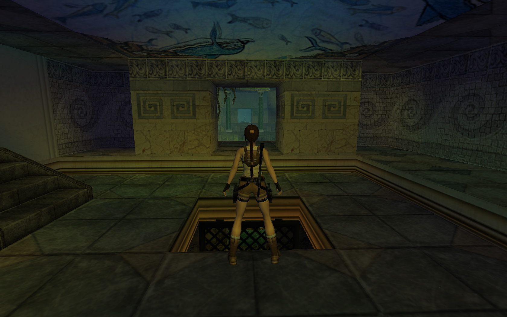 Menj most már tovább, fel az emelkedőn, nekifutásból ugorj át a szemközti folyosóra, ne törődj a denevérekkel. Balra a fali karral nyisd ki az ajtót, de még ne menj tovább. Menj a másik irányba, fel a lépcsőkön, feszítsd ki az ajtót, a másikat rúgd be. Közben lődd szét a ládákat, mert lőszereket, és az egyik sarokban az UZI-t is megtalálod. Menj vissza, és most már át a kinyitott ajtón.
