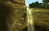 Balra a faltól, lépj egyet jobbra, ott csússz le. Az utolsó pillanatban ugorj, és nyomd a balra-t, és ha elérted a platformot, egészen a jobb oldalán csússz le, NE ugorj, csak nyomd a jobbra-t, így a jobb oldalin csúszol le tovább, majd a balra-t nyomd, így a következőn is csúszol tovább. NE ugorj itt sem, csak a végén, és balra-t is nyomd, de a CTRL-t sose nyomd. Ha sikerült, akkor a szemközti sziklán landolsz. Tehát ugrani csak az elején, és a végén, a harmadik szigetről kell a sziklára. Közben csak csúszni, és irányítani, jobbra, majd balra.